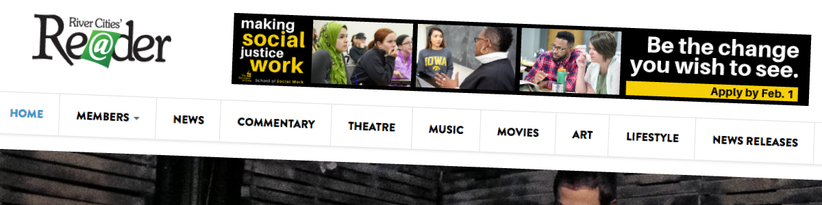 The Reader sends E-Blasts to approximately 3,000 recipients every Friday, which highlight the latest in Quad Cities’ news, art, theatre, music, movies, and more. Currently there are advertising opportunities for 3 web banners within each E-Blast. Click here for an archive of our most recent mailings.